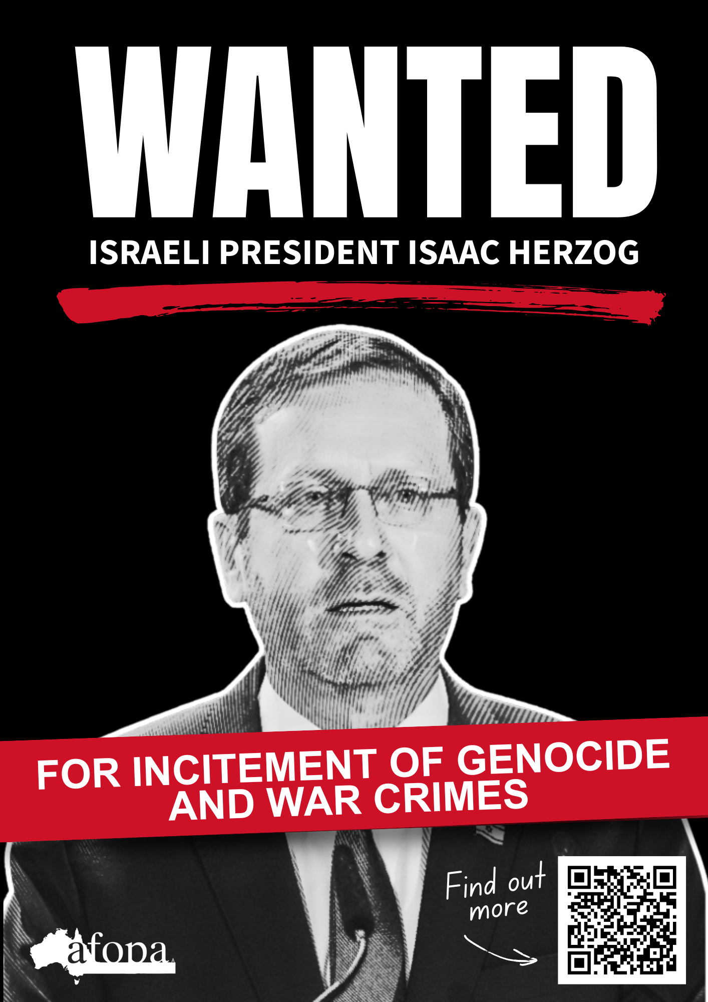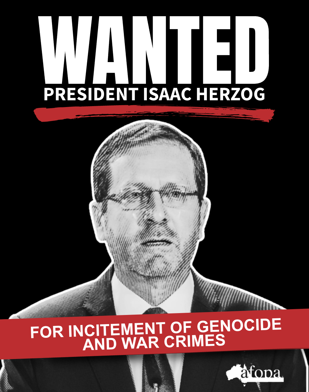 Demand that if Isaac Herzog travels to Australia, the Australian Federal Police immediately investigate his criminal liability.
