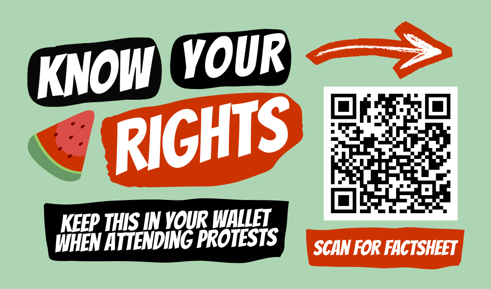 The Australian Friends of Palestine Association has created ‘Know Your Rights’ cards to provide clear, accessible information about your rights when interacting with police at protests and in the event of an arrest.